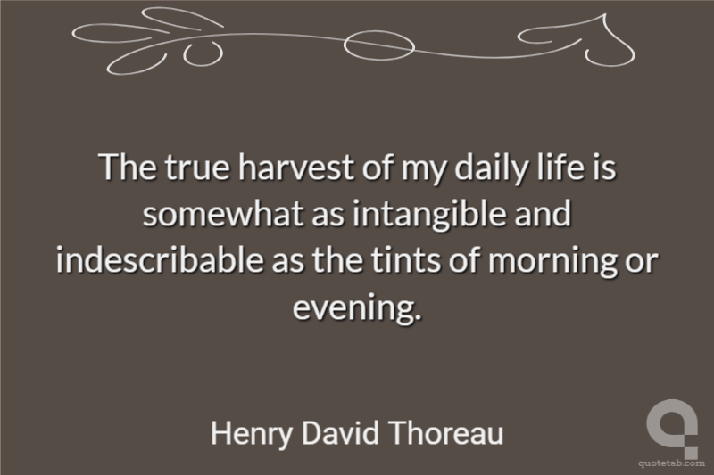 The true harvest of my daily life is somewhat as intangible and indescribable as the tints of morning or evening.