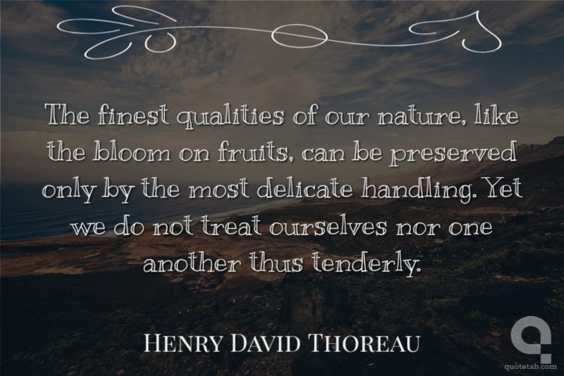 The finest qualities of our nature, like the bloom on fruits, can be preserved only by the most delicate handling. Yet we do not treat ourselves nor one another thus tenderly.