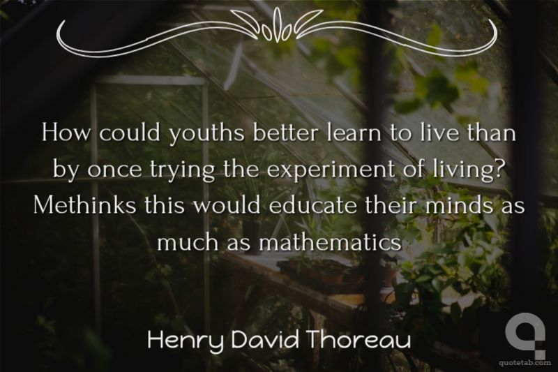 How could youths better learn to live than by once trying the experiment of living? Methinks this would educate their minds as much as mathematics