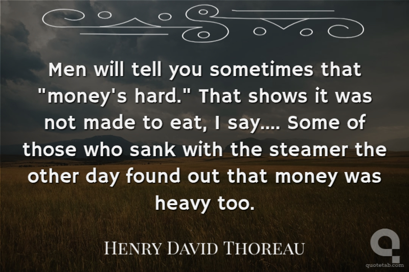 Men will tell you sometimes that "money's hard." That shows it was not made to eat, I say.... Some of those who sank with the steamer the other day found out that money was heavy too.