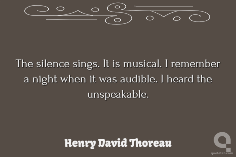 The silence sings. It is musical. I remember a night when it was audible. I heard the unspeakable.
