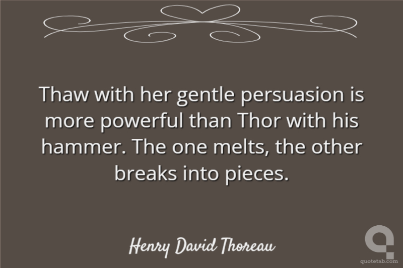 Thaw with her gentle persuasion is more powerful than Thor with his hammer. The one melts, the other breaks into pieces.