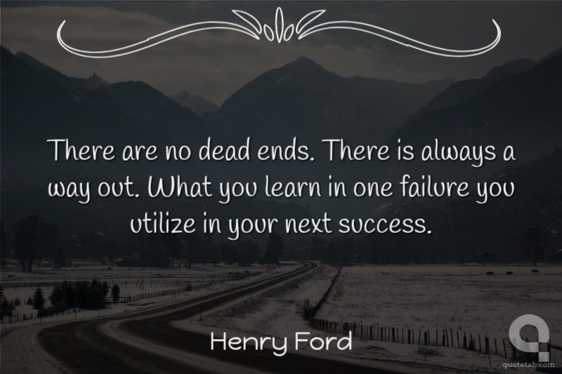 There are no dead ends. There is always a way out. What you learn in one failure you utilize in your next success.