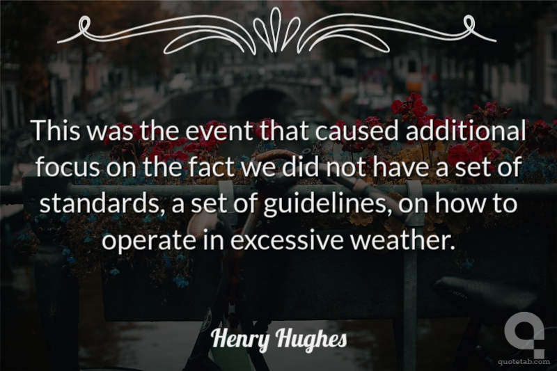 This was the event that caused additional focus on the fact we did not have a set of standards, a set of guidelines, on how to operate in excessive weather.