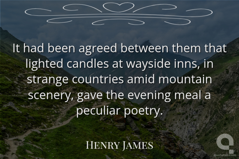 It had been agreed between them that lighted candles at wayside inns, in strange countries amid mountain scenery, gave the evening meal a peculiar poetry.
