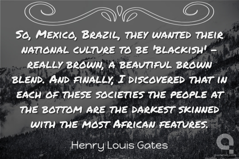 So, Mexico, Brazil, they wanted their national culture to be 'blackish' - really brown, a beautiful brown blend. And finally, I discovered that in each of these societies the people at the bottom are the darkest skinned with the most African features.