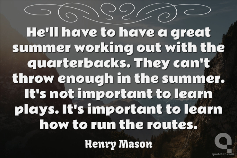 He'll have to have a great summer working out with the quarterbacks. They can't throw enough in the summer. It's not important to learn plays. It's important to learn how to run the routes.