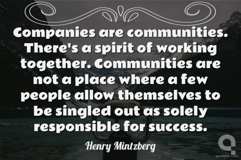 Companies are communities. There's a spirit of working together. Communities are not a place where a few people allow themselves to be singled out as solely responsible for success.