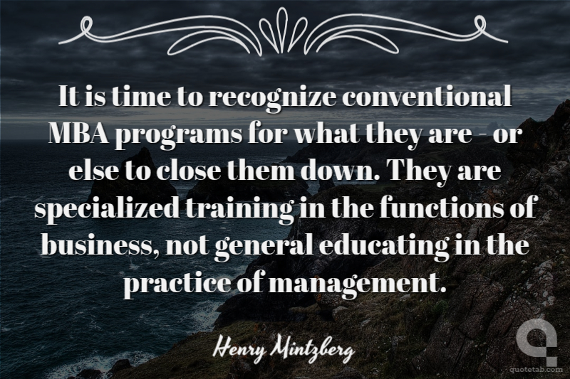 What I have against M.B.A.s is the assumption that you come out of a two-year program probably never having been a manager - at least for full-time younger people M.B.A. programs - and assume you are ready to manage.