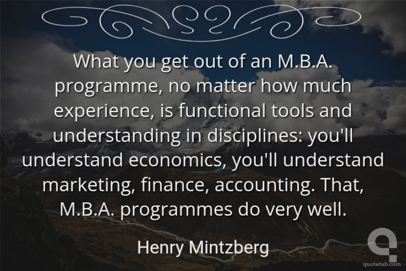 What you get out of an M.B.A. programme, no matter how much experience, is functional tools and understanding in disciplines: you'll understand economics, you'll understand marketing, finance, accounting. That, M.B.A. programmes do very well.