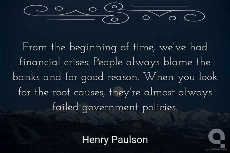 From the beginning of time, we've had financial crises. People always blame the banks and for good reason. When you look for the root causes, they're almost always failed government policies.