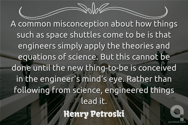 A common misconception about how things such as space shuttles come to be is that engineers simply apply the theories and equations of science. But this cannot be done until the new thing-to-be is conceived in the engineer's mind's eye. Rather than following from science, engineered things lead it.