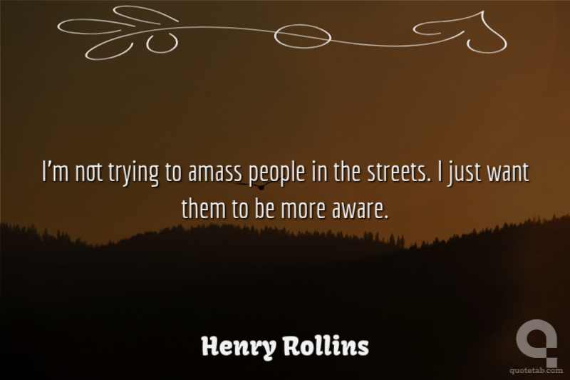 I'm not trying to amass people in the streets. I just want them to be more aware.