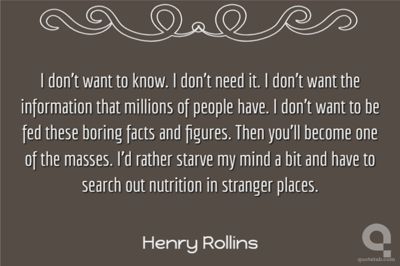 I don't want to know. I don't need it. I don't want the information that millions of people have. I don't want to be fed these boring facts and figures. Then you'll become one of the masses. I'd rather starve my mind a bit and have to search out nutrition in stranger places.