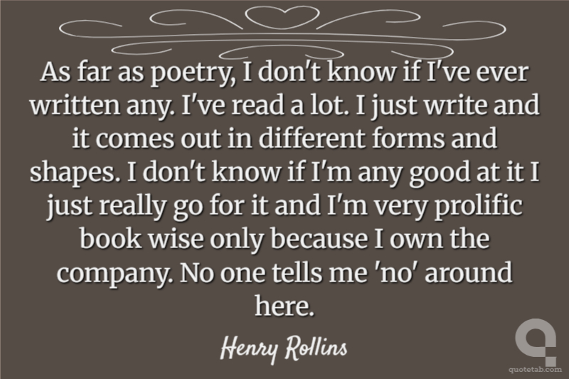 As far as poetry, I don't know if I've ever written any. I've read a lot. I just write and it comes out in different forms and shapes. I don't know if I'm any good at it I just really go for it and I'm very prolific book wise only because I own the company. No one tells me 'no' around here.
