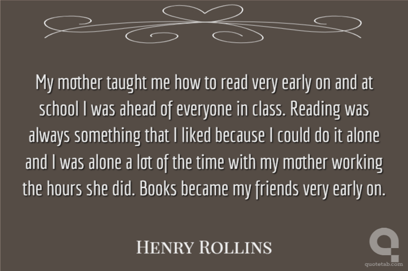 My mother taught me how to read very early on and at school I was ahead of everyone in class. Reading was always something that I liked because I could do it alone and I was alone a lot of the time with my mother working the hours she did. Books became my friends very early on.