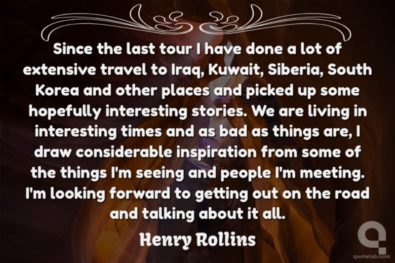 Since the last tour I have done a lot of extensive travel to Iraq, Kuwait, Siberia, South Korea and other places and picked up some hopefully interesting stories. We are living in interesting times and as bad as things are, I draw considerable inspiration from some of the things I'm seeing and people I'm meeting. I'm looking forward to getting out on the road and talking about it all.