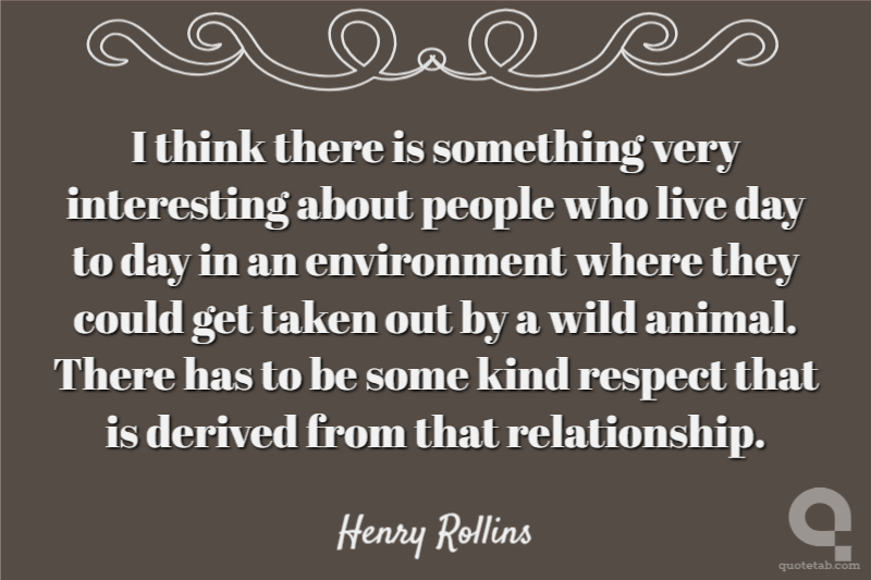 I think there is something very interesting about people who live day to day in an environment where they could get taken out by a wild animal. There has to be some kind respect that is derived from that relationship.