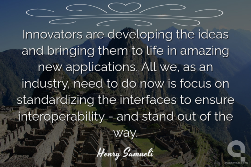 Innovators are developing the ideas and bringing them to life in amazing new applications. All we, as an industry, need to do now is focus on standardizing the interfaces to ensure interoperability - and stand out of the way.