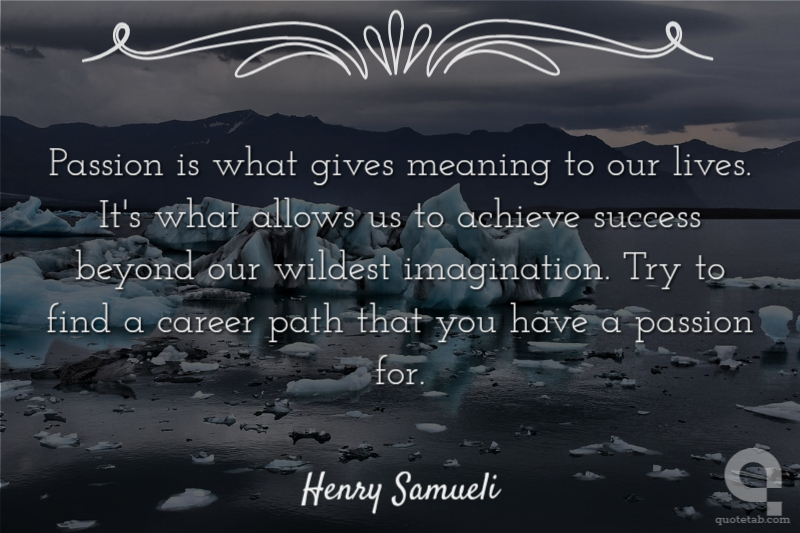 Passion is what gives meaning to our lives. It's what allows us to achieve success beyond our wildest imagination. Try to find a career path that you have a passion for.