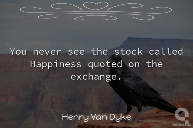 You never see the stock called Happiness quoted on the exchange.
