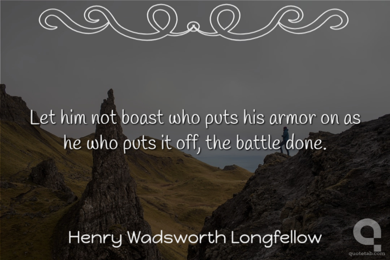 Let him not boast who puts his armor on as he who puts it off, the battle done.