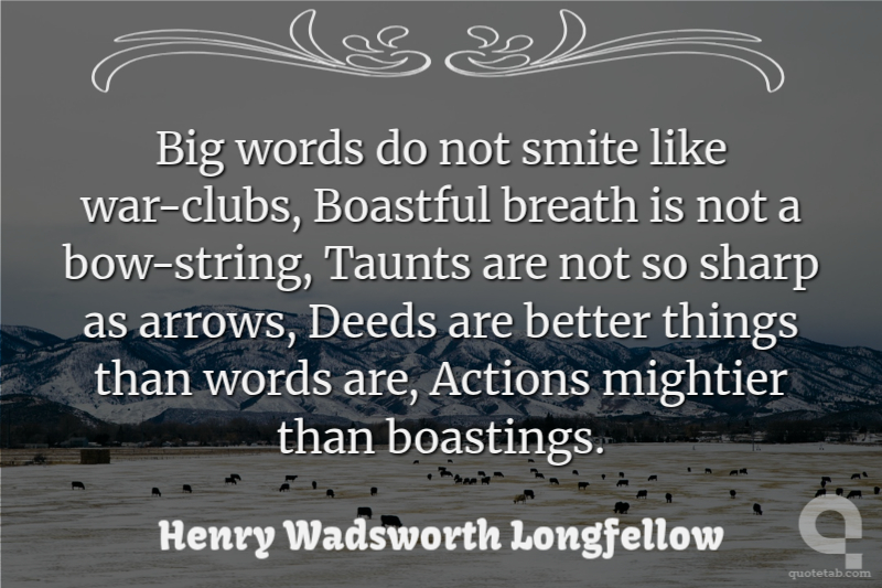 Big words do not smite like war-clubs, Boastful breath is not a bow-string, Taunts are not so sharp as arrows, Deeds are better things than words are, Actions mightier than boastings.