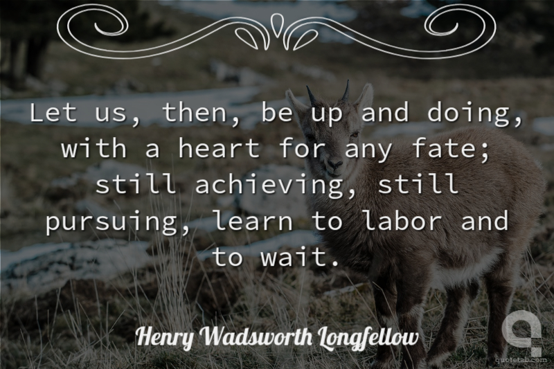 Let us, then, be up and doing, with a heart for any fate; still achieving, still pursuing, learn to labor and to wait.