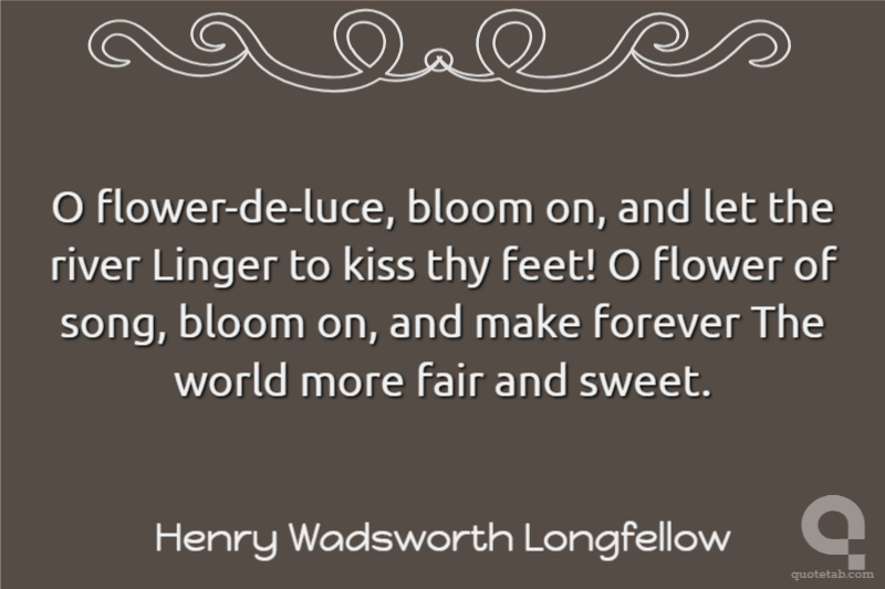 O flower-de-luce, bloom on, and let the river Linger to kiss thy feet! O flower of song, bloom on, and make forever The world more fair and sweet.