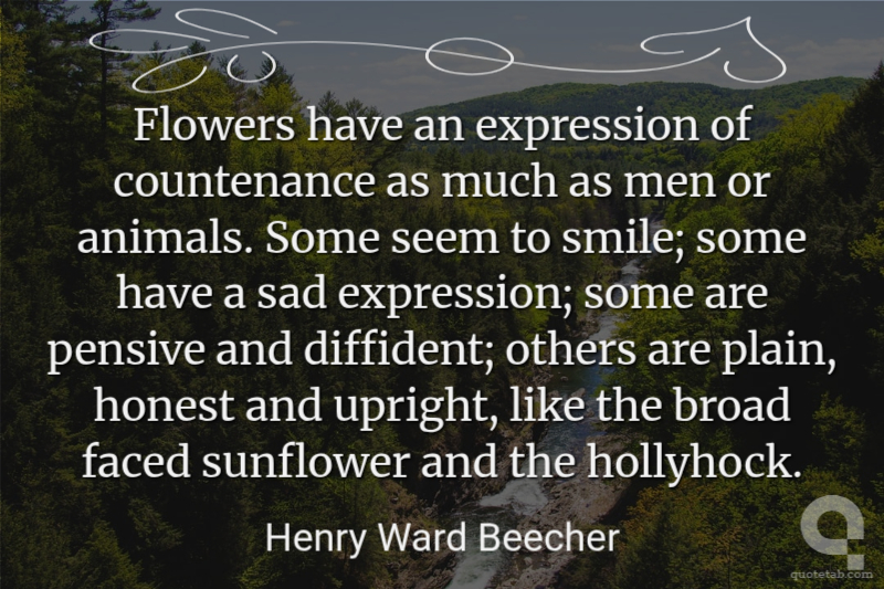 Flowers have an expression of countenance as much as men or animals. Some seem to smile; some have a sad expression; some are pensive and diffident; others are plain, honest and upright, like the broad faced sunflower and the hollyhock.