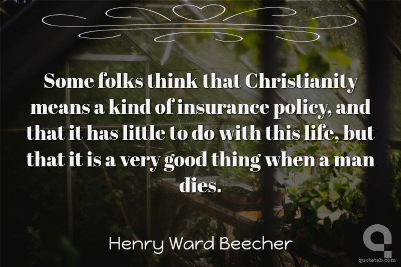 Some folks think that Christianity means a kind of insurance policy, and that it has little to do with this life, but that it is a very good thing when a man dies.