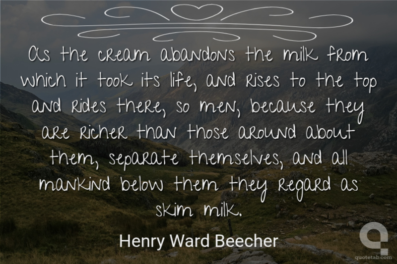 As the cream abandons the milk from which it took its life, and rises to the top and rides there, so men, because they are richer than those around about them, separate themselves, and all mankind below them they regard as skim milk.