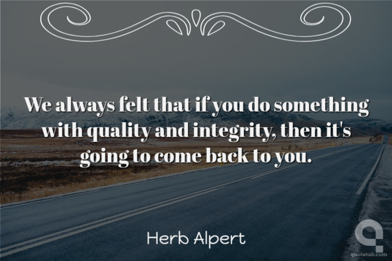 We always felt that if you do something with quality and integrity, then it's going to come back to you.