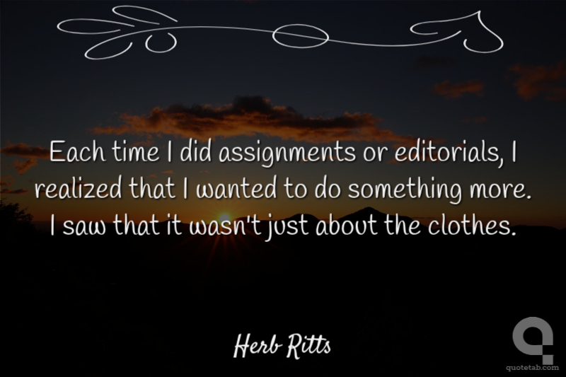 Each time I did assignments or editorials, I realized that I wanted to do something more. I saw that it wasn't just about the clothes.