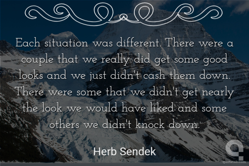 Each situation was different. There were a couple that we really did get some good looks and we just didn't cash them down. There were some that we didn't get nearly the look we would have liked and some others we didn't knock down.
