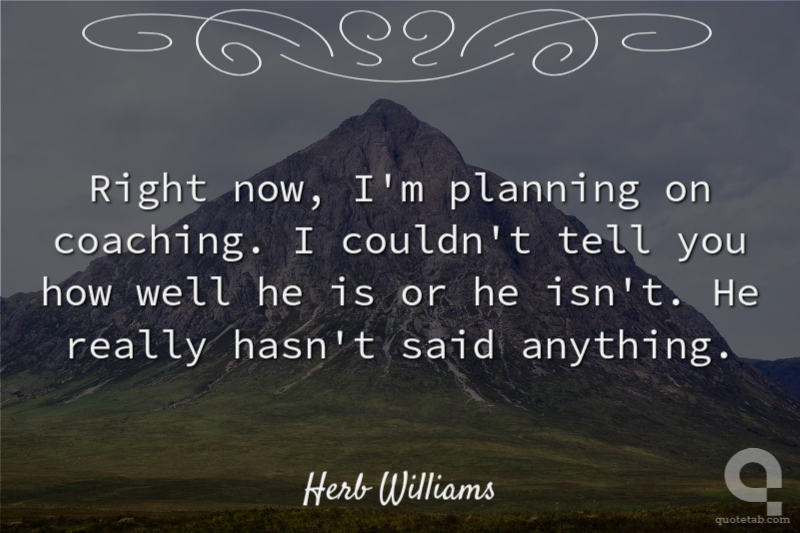 Right now, I'm planning on coaching. I couldn't tell you how well he is or he isn't. He really hasn't said anything.