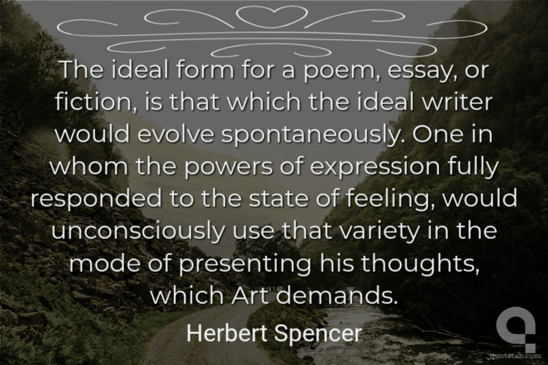 The ideal form for a poem, essay, or fiction, is that which the ideal writer would evolve spontaneously. One in whom the powers of expression fully responded to the state of feeling, would unconsciously use that variety in the mode of presenting his thoughts, which Art demands.
