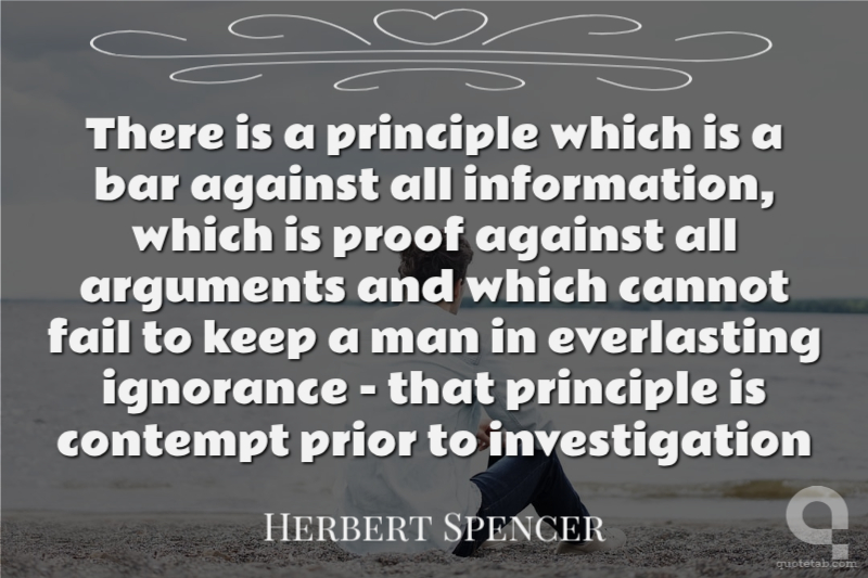There is a principle which is a bar against all information, which is proof against all arguments and which cannot fail to keep a man in everlasting ignorance - that principle is contempt prior to investigation