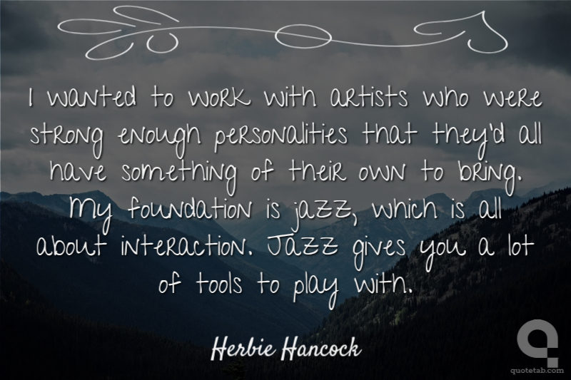 I wanted to work with artists who were strong enough personalities that they'd all have something of their own to bring. My foundation is jazz, which is all about interaction. Jazz gives you a lot of tools to play with.