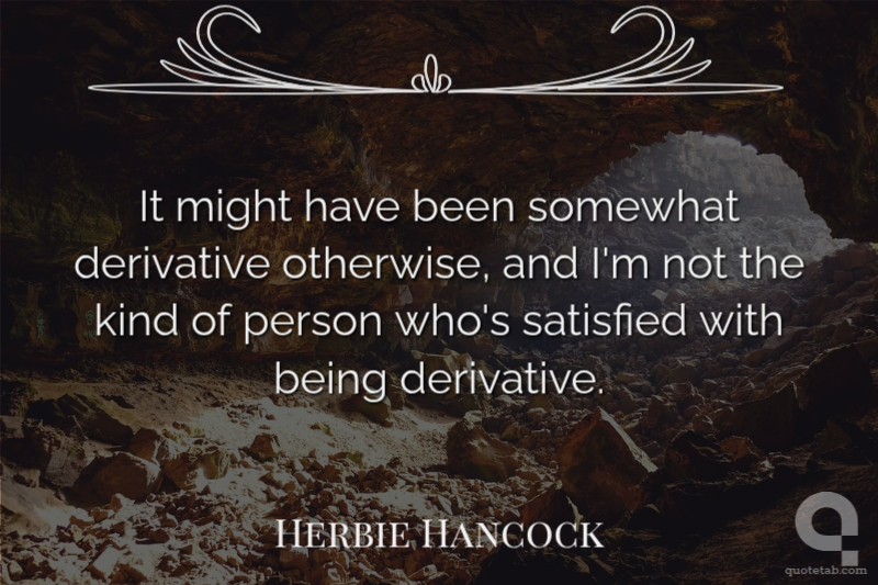 It might have been somewhat derivative otherwise, and I'm not the kind of person who's satisfied with being derivative.