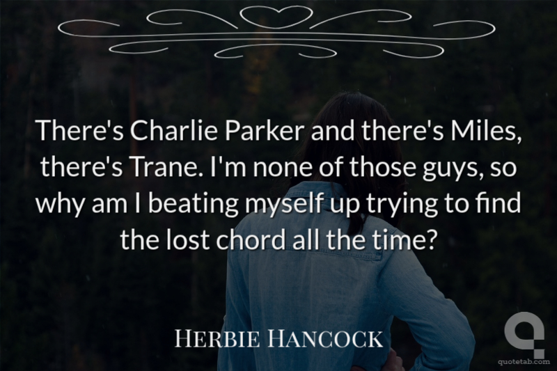 There's Charlie Parker and there's Miles, there's Trane. I'm none of those guys, so why am I beating myself up trying to find the lost chord all the time?