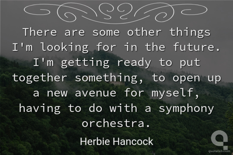 There are some other things I'm looking for in the future. I'm getting ready to put together something, to open up a new avenue for myself, having to do with a symphony orchestra.