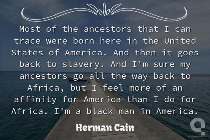 Most of the ancestors that I can trace were born here in the United States of America. And then it goes back to slavery. And I'm sure my ancestors go all the way back to Africa, but I feel more of an affinity for America than I do for Africa. I'm a black man in America.