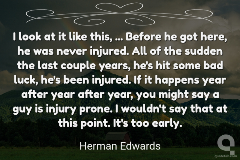I look at it like this, ... Before he got here, he was never injured. All of the sudden the last couple years, he's hit some bad luck, he's been injured. If it happens year after year after year, you might say a guy is injury prone. I wouldn't say that at this point. It's too early.