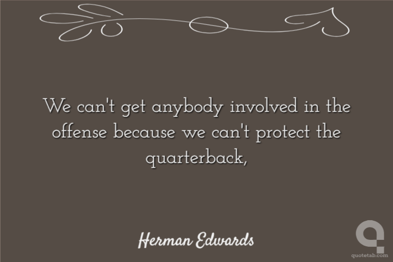 We can't get anybody involved in the offense because we can't protect the quarterback,
