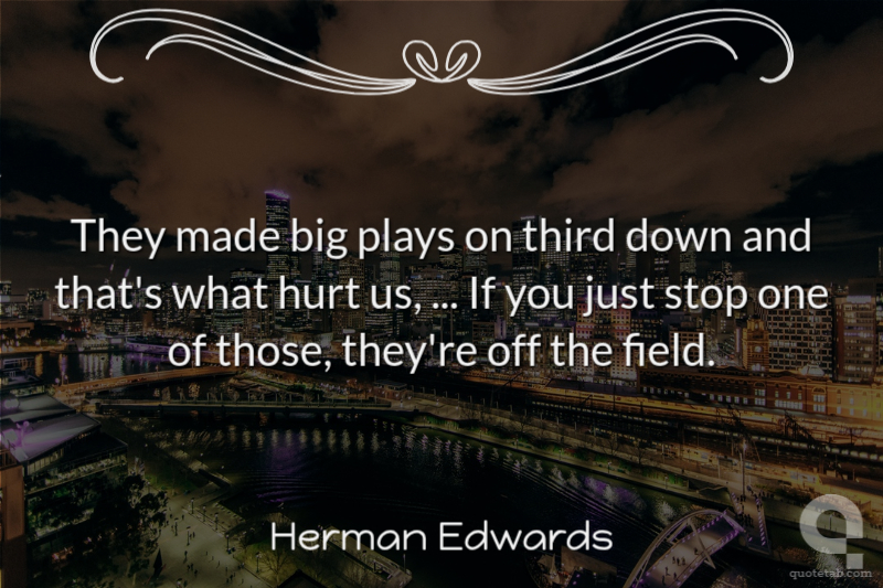 Herman "Herm" Edwards, Jr.is an American football analyst who most recently coached in the National Football League for the Kansas City Chiefs. Since 2009, he has been a pro football analyst for ESPN. He played cornerback for 10 seasonswith the Philadelphia Eagles, Los Angeles Rams and Atlanta Falcons. Prior to his coaching career, Edwards was known best as the player who recovered a fumble by Giants quarterback Joe Pisarcik on a play dubbed "The Miracle at the Meadowlands."...