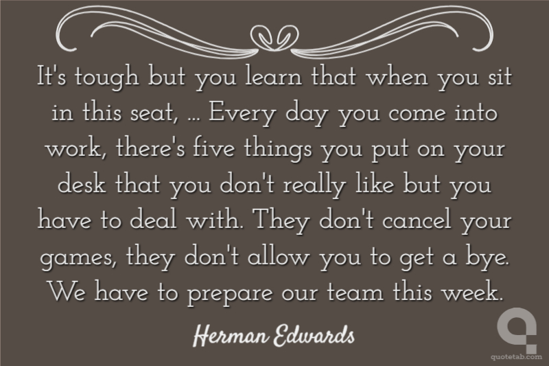 It's tough but you learn that when you sit in this seat, ... Every day you come into work, there's five things you put on your desk that you don't really like but you have to deal with. They don't cancel your games, they don't allow you to get a bye. We have to prepare our team this week.