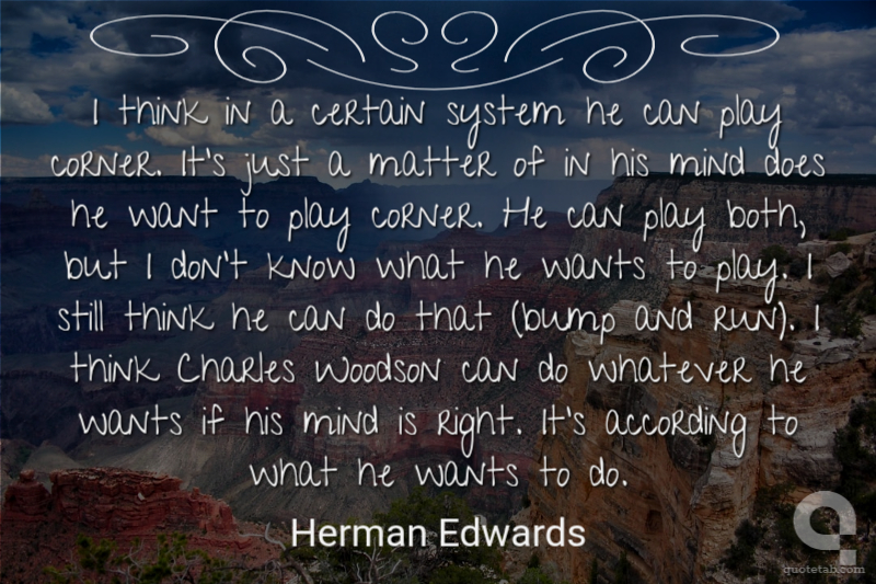 I think in a certain system he can play corner. It's just a matter of in his mind does he want to play corner. He can play both, but I don't know what he wants to play. I still think he can do that (bump and run). I think Charles Woodson can do whatever he wants if his mind is right. It's according to what he wants to do.
