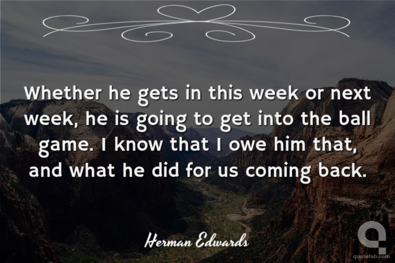 Whether he gets in this week or next week, he is going to get into the ball game. I know that I owe him that, and what he did for us coming back.