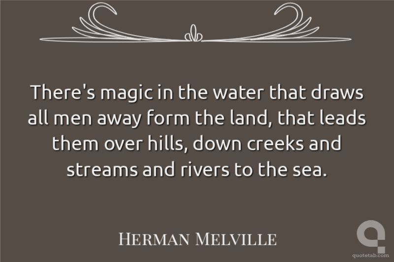 There's magic in the water that draws all men away form the land, that leads them over hills, down creeks and streams and rivers to the sea.